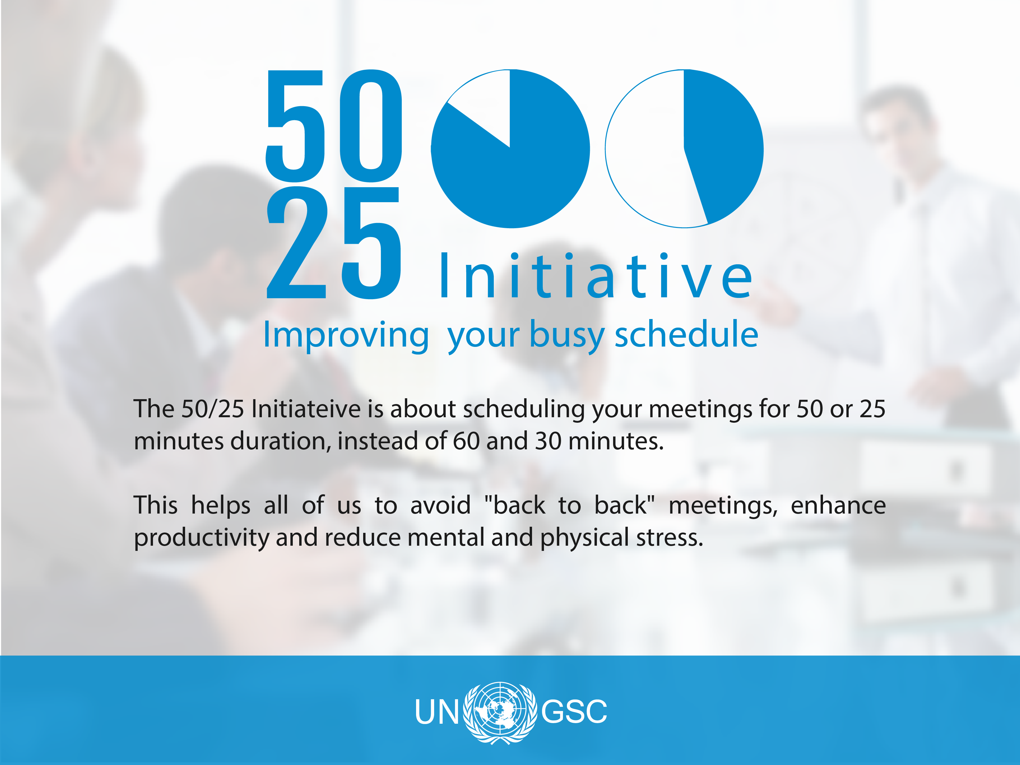 We received the below from our UNGSC FSU Committee, with some great tips on working Smarter, in particular in the era of remote work and constant back-to-back zoom or MsTeams Meetings, the advice provided below including the scientific evidence makes good sense! Promotional posters can be used at your discretion.